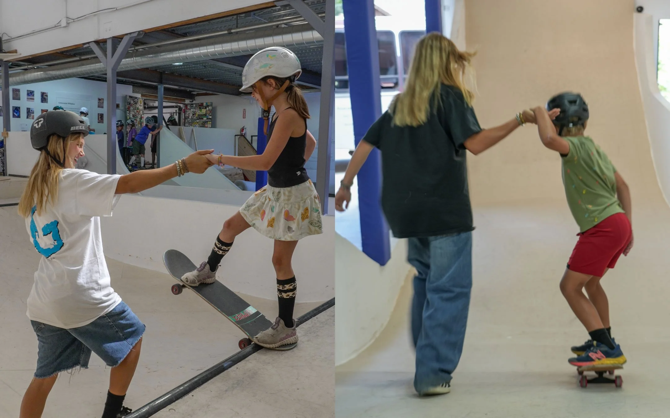 We offer one-hour lessons for beginner skateboarders of any age on weekends from Noon-7pm. This class size is limited to four skaters so that you can get a lot of time on the ramps and start to build your muscle memory. Like everything, skateboarding is more fun with friends so be sure to ask around and see if anyone would want to join you.